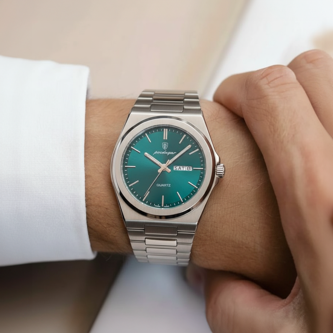 Made with high-quality stainless steel and scratch-resistant glass, this watch is built for durability.