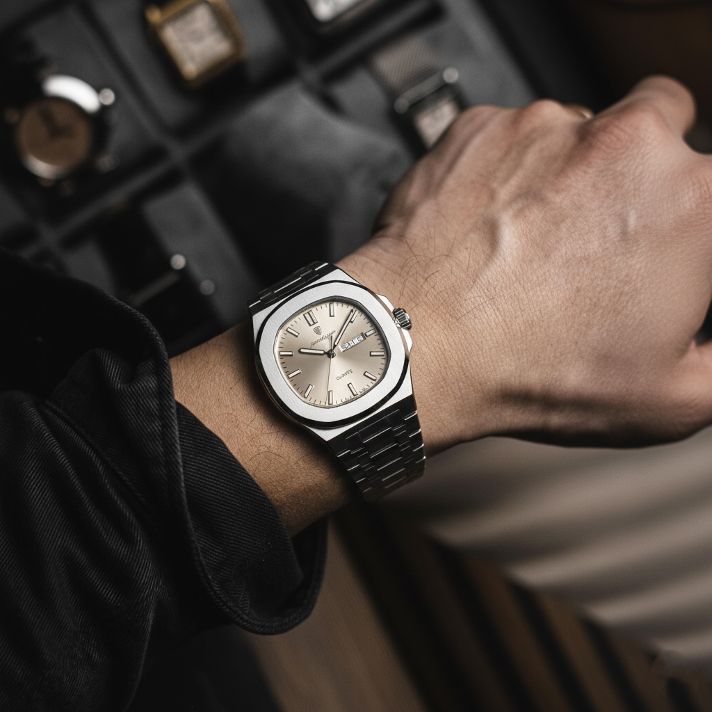 Made with high-quality stainless steel and scratch-resistant glass, this watch is built for durability.