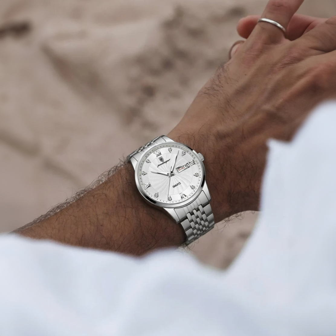 Made with high-quality stainless steel and scratch-resistant glass, this watch is built for durability.